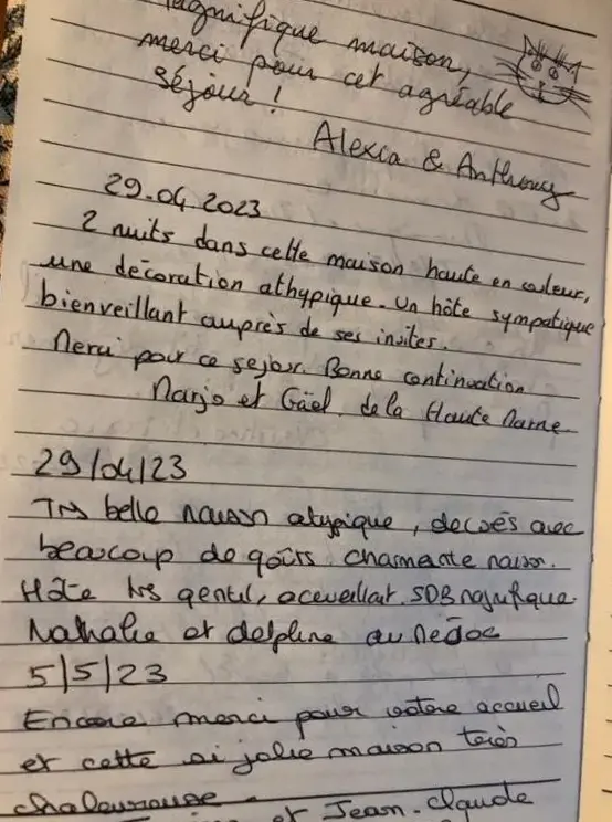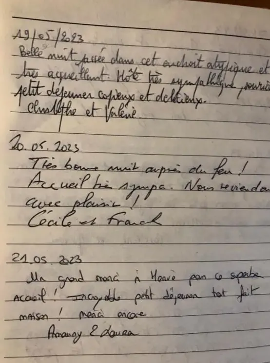 We werden ontvangen door Hervé de eigenaar die erg aardig was, onze kamer was groot en voorzien van een badkamer en toilet, alles was schoon, er was ook een bureau, we sliepen heel goed in een zeer comfortabel bed de volgende ochtend werden we getrakteerd op een uitstekend ontbijt met croissantkoffie, lekker brood, jam, een kleine verse fruitsalade, sinaasappelsap en brioche bruin in de pan, een genot